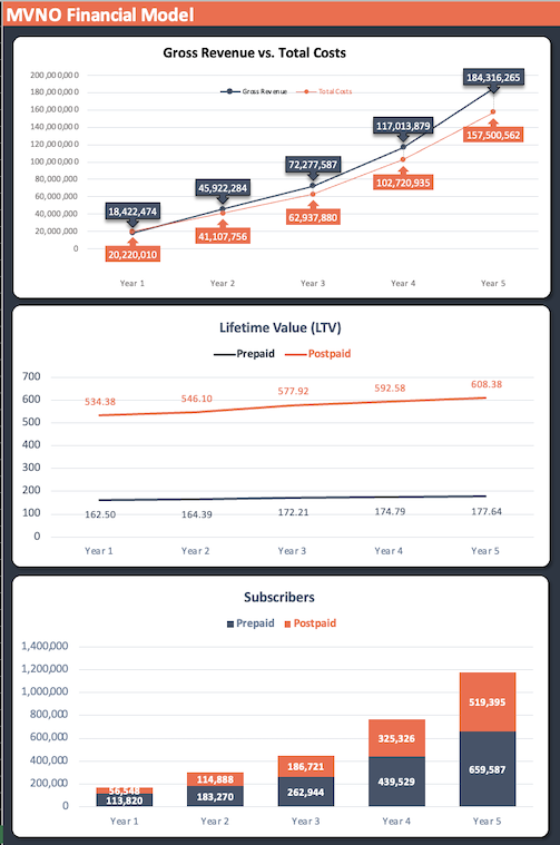 Make informed strategic decisions based on accurate financial data and projections tailored specifically for MVNO operations.